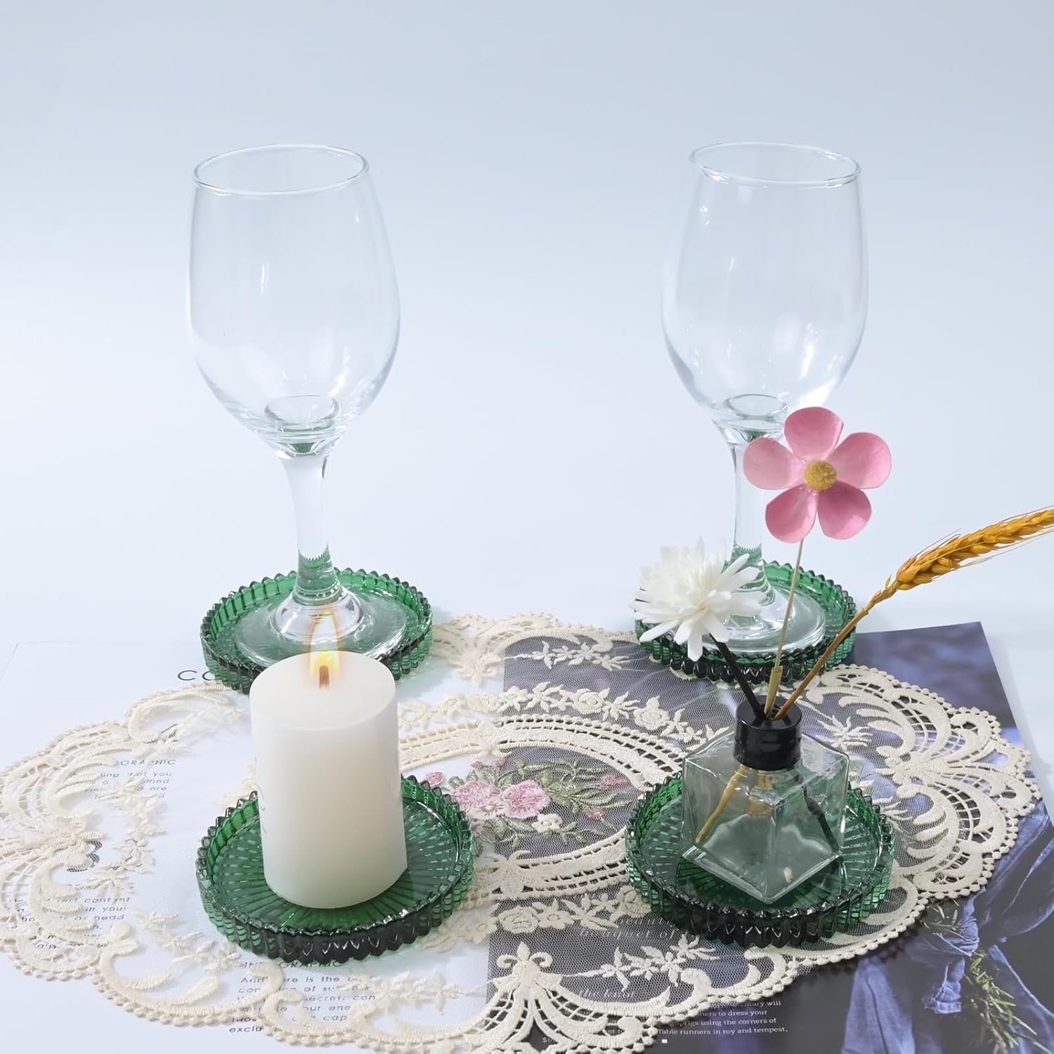 Glass Coaster 6 Pack Round Cup Coasters for Drinks,Crystal Coffee Coaster,Stylish Drink Coasters for Kitchen Bar Dining Room Living Room Office Decor and Jewelry Storage,Green