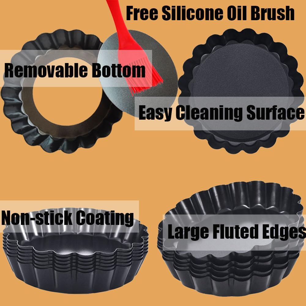 - 【HASSLE-FREE CLEANUP】Each tart pans with removable bottom baked evenly, heavy duty carbon steel promotes even heat distribution for golden baking results. Resists scratches for long-lasting performance even at 445℉ (230℃). All parts are Dishwasher Safe.