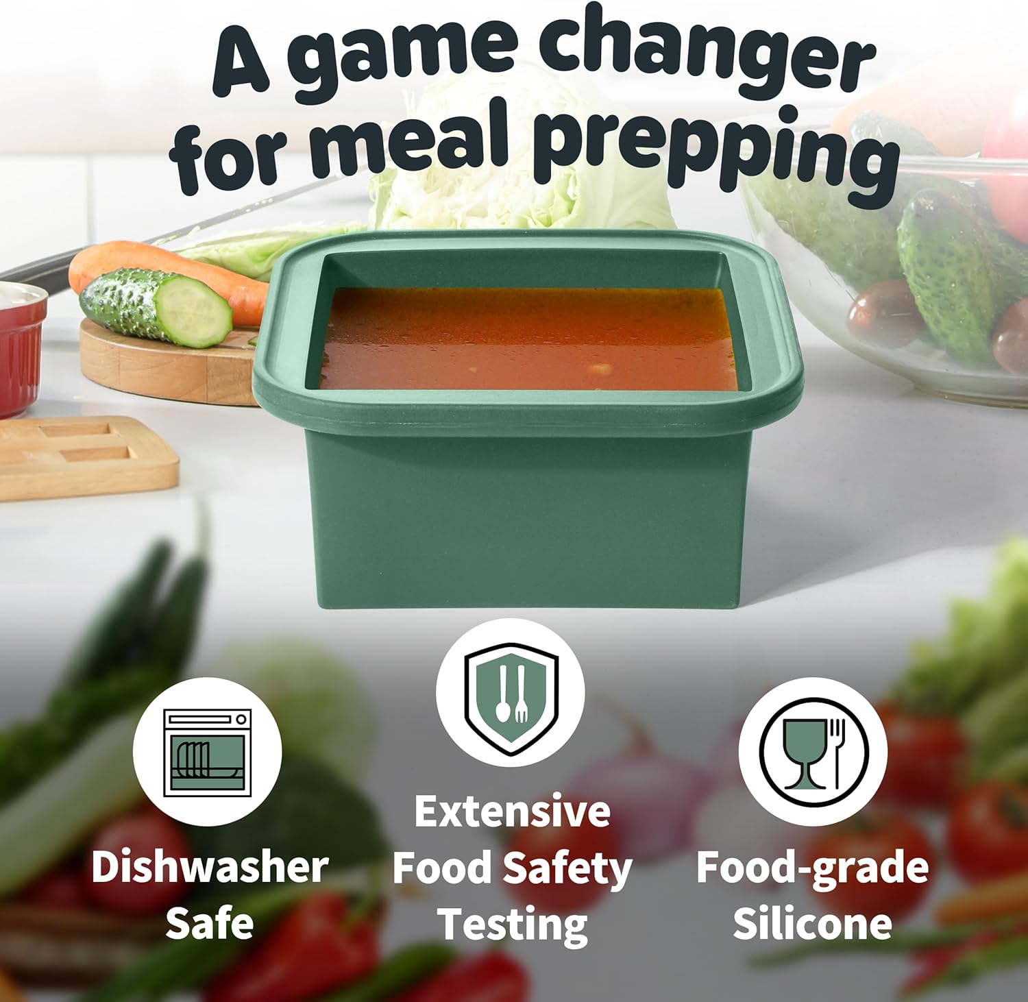 - VERSATILE & CONVENIENT FOR ANY KITCHEN TASK Use them for: Freezing homemade soups, sauces, and broths Storing baby food and portioning snacks Baking (up to 415°F without the lid) Making ice cubes, chocolates, and more! Dishwasher-safe for quick and easy cleaning, they save you time in the kitchen.