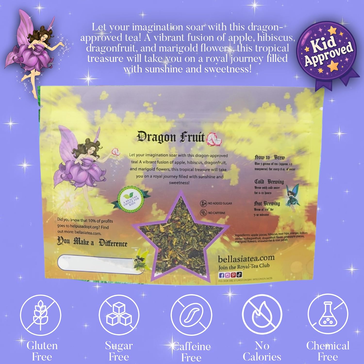 - Fun Daily Ritual: Introduce a delightful tea moment into your child's daily routine with a balanced and fruity cup of caffeine-free tea. Crafted using real dragon fruit fruit pieces, this blend is naturally sweet and ideal for warm or iced enjoyment. It’s a great choice for kids who enjoy variety through tea bags. Whether for snack time or story hour, our loose-leaf tea brings fun to every sip.