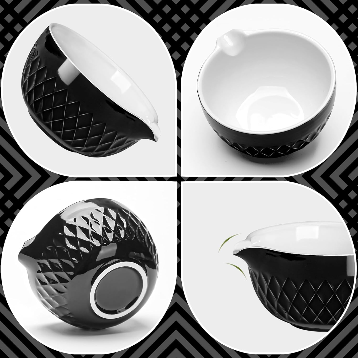 Matcha Whisk Set, 7 Pcs Matcha Kit, Ceramic Matcha Set Includes Matcha Bowl with Spout, Matcha Whisk and Holder, Bamboo Scoop, Scoop Rest, Sifter and Tea Towel (Onyx Black)