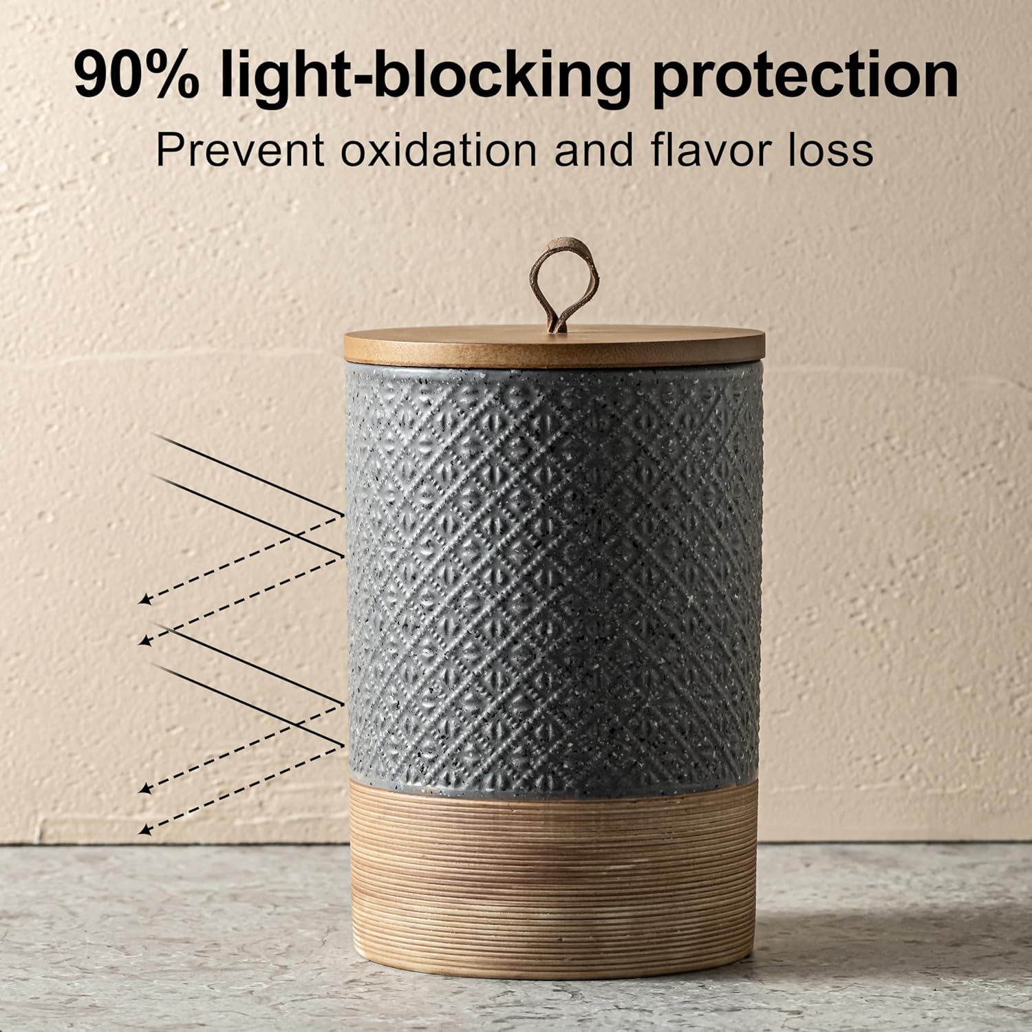 Ceramic Spice Jars with Lids, Coffee Canister with Airtight Lid, Small Kitchen Food Storage Jars for Spice Sugar Tea Bag, Stackable Decor Kitchen Jar for Counter - Gray & 20 fl.oz