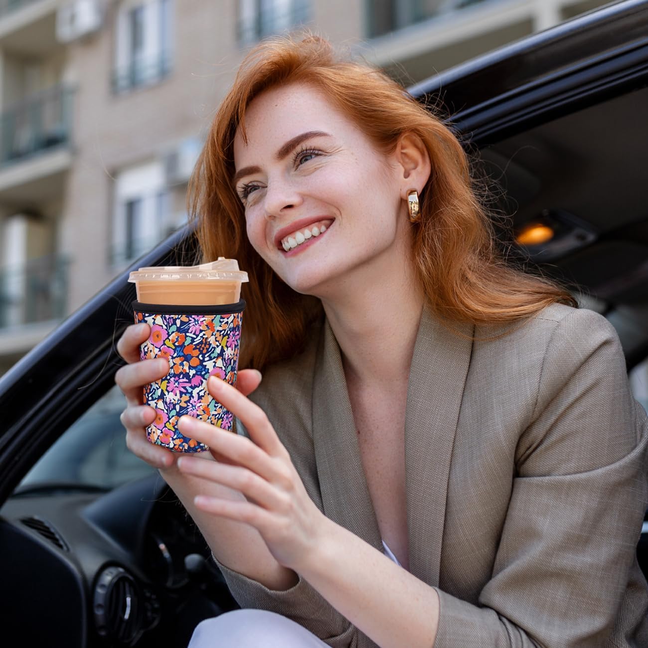 Reusable Insulated Neoprene Iced Coffee Cup Sleeve, Durable Drink Sleeve for Cold Beverages, Beverage Holder for Iced Coffee, Bloom Frenzy