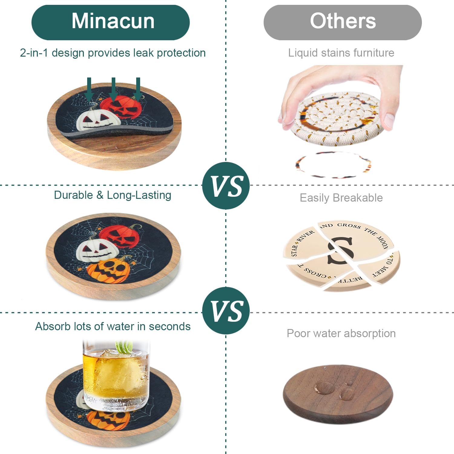 Halloween Coasters Set of 6, Pumpkins Coaster, Minacun Black Absorbent Coasters with Holder Halloween Thanksgiving Themed Party Decoration 4.3 Inch