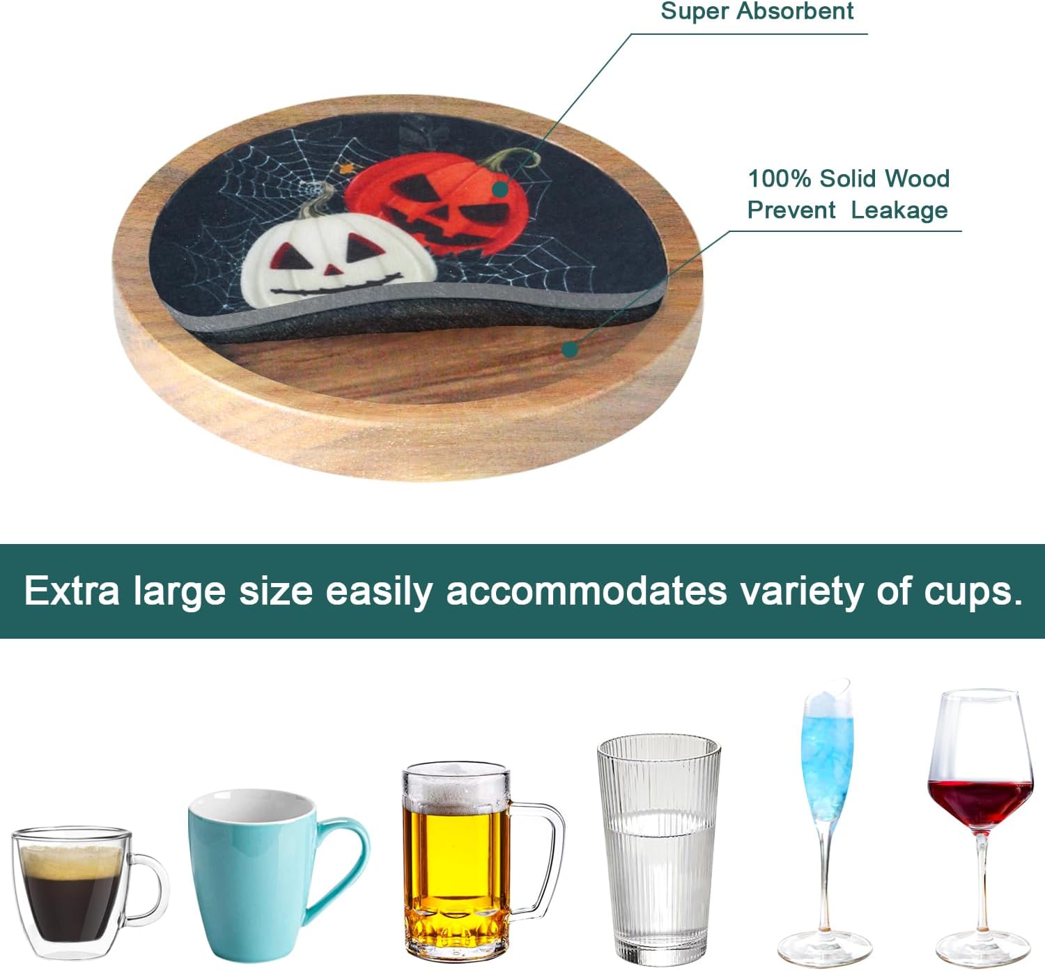 - 🎁Fun Coasters Gift: Pumpkins drink cup mat comes with gift packaging bag, great gift for friends, family, or colleagues; perfect for Halloween, Thanksgiving, Christmas and Fall themed parties, or perfect decoration to kitchen, bar, living room, bedroom, office, cafe, hotel and restaurant.