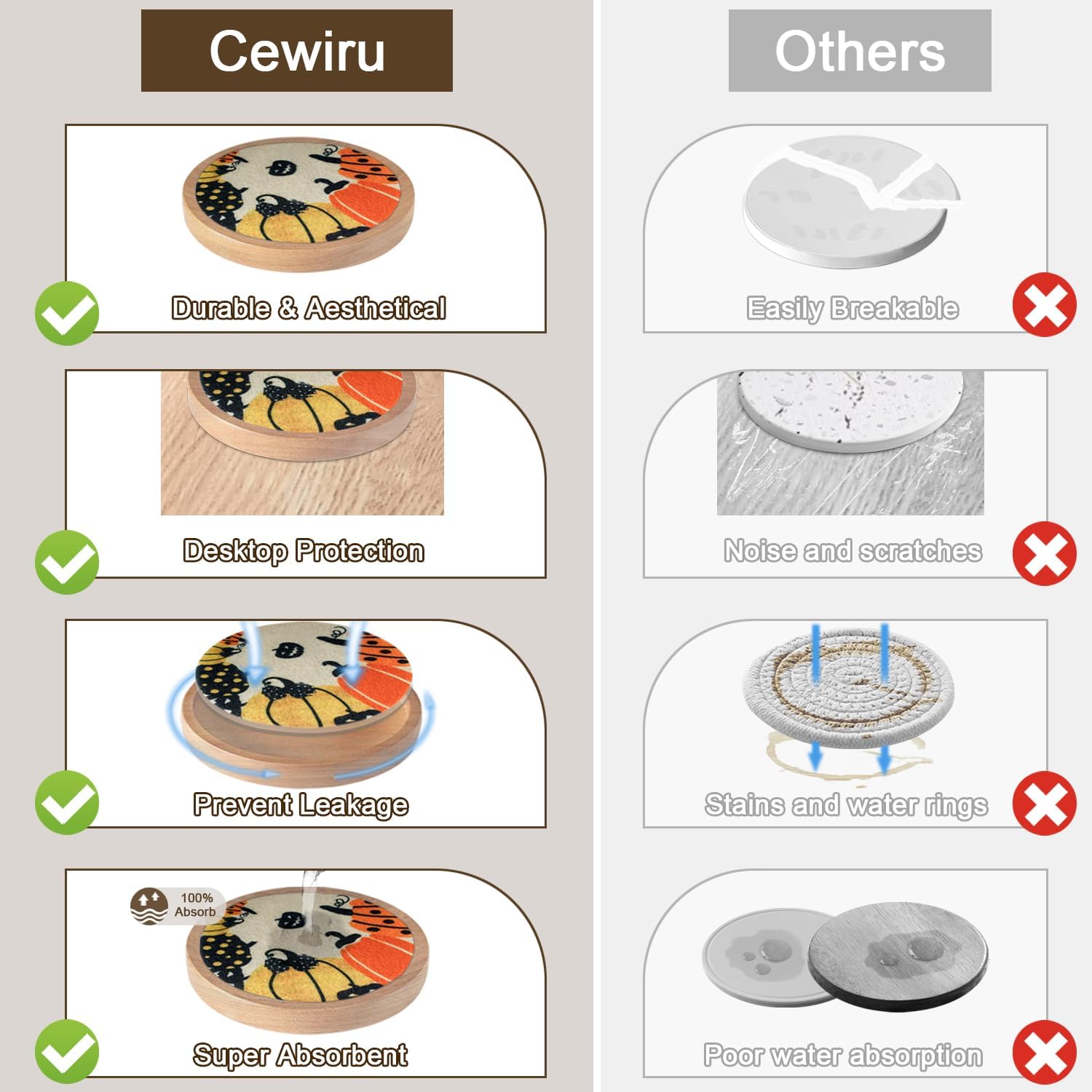 Fall Coaster Set of 6 Cewiru Halloween Coasters for Drinks Absorbent Cup Mats for Table Protection Unique Halloween Round Coasters for Coffee Table Kitchen Decor 4.3"