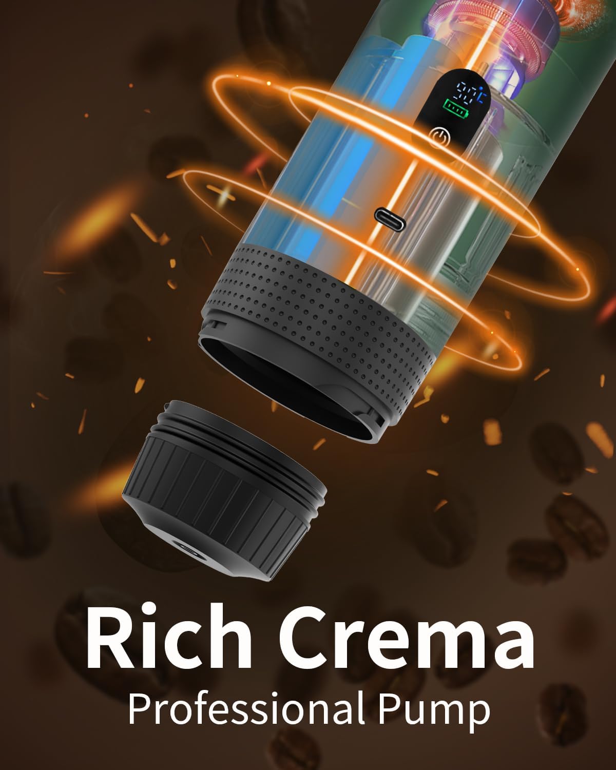 Portable Electric Espresso Machine, Travel Coffee Maker Brewer Compatible with Ground Coffee & NS Capsules (Green with LCD Screen)
