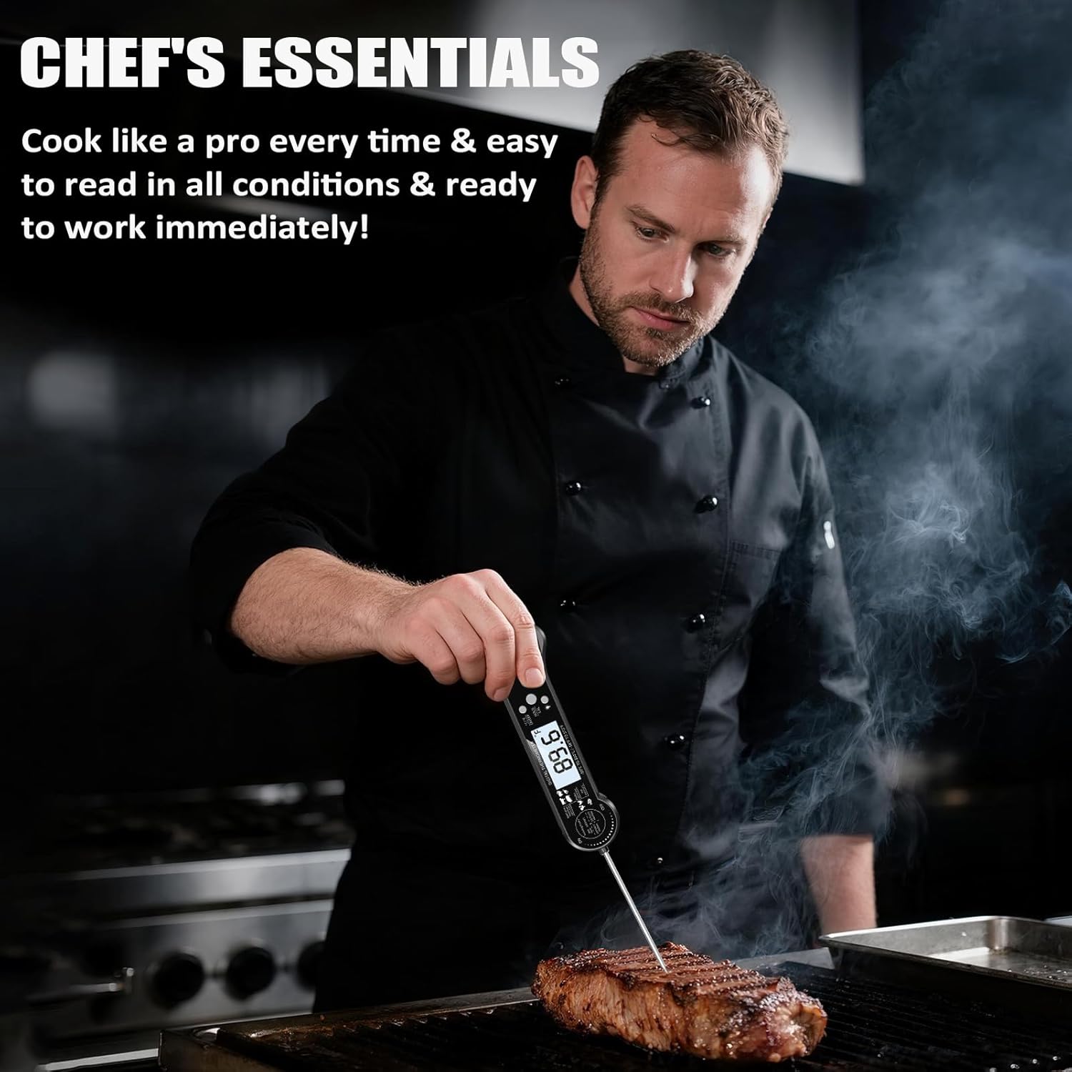 Digital Meat Thermometer, Instant Read Food Thermometer with Backlight & Hold Function,Magnetic, LCD Display, 180° Foldable, Kitchen Appliances Essentials for BBQ,Gifts for Men Him Dad Birthday