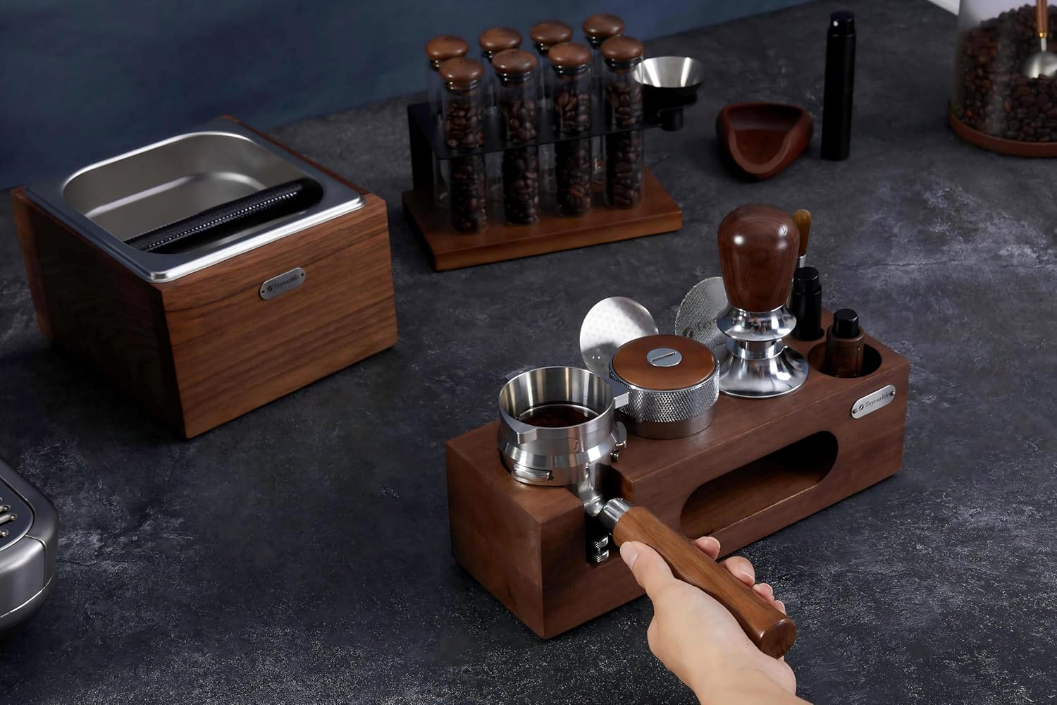 - DURABLE CONSTRUCTION:Crafted from high-quality stainless steel with a chic walnut wooden handle, this portafilter guarantees durability while adding an elegant touch to your coffee-making ritual.