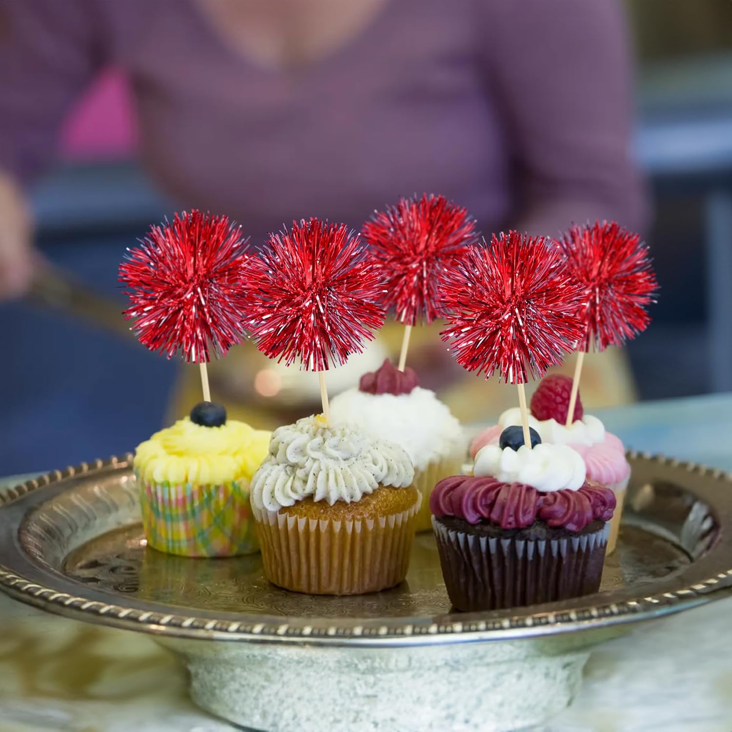 - -Premium Material: These Foil Firework Cupcake Toppers are made of high quality foil and food-grade toothpick, very safe to put them on cakes, cupcakes, ice cream, fruits, pie, dessert, cheese or any dish and food appetizer you want to decorate.