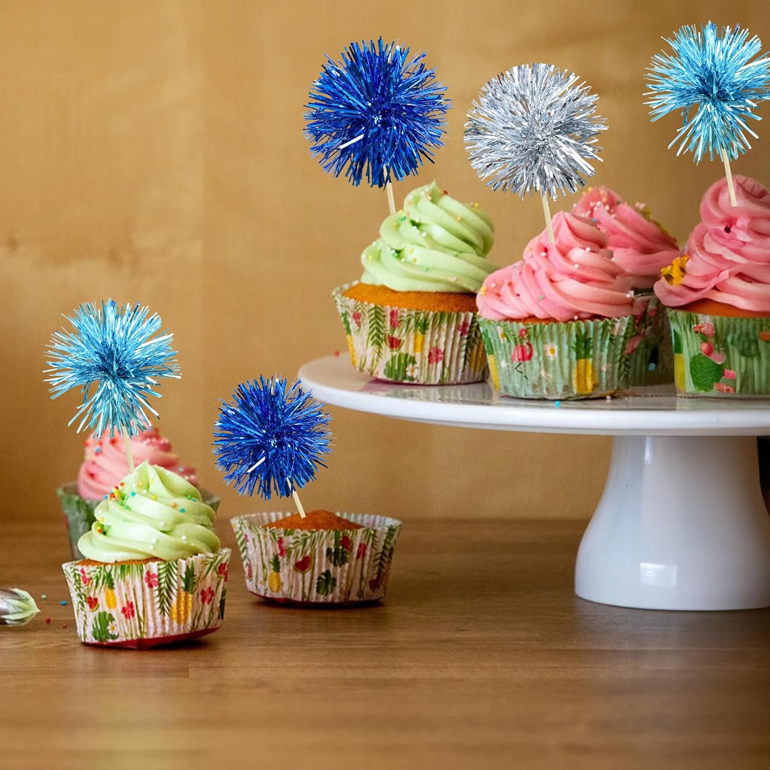 - -Premium Material: These Foil Firework Cupcake Toppers are made of high quality foil and food-grade toothpick, very safe to put them on cakes, cupcakes, ice cream, fruits, pie, dessert, cheese or any dish and food appetizer you want to decorate.