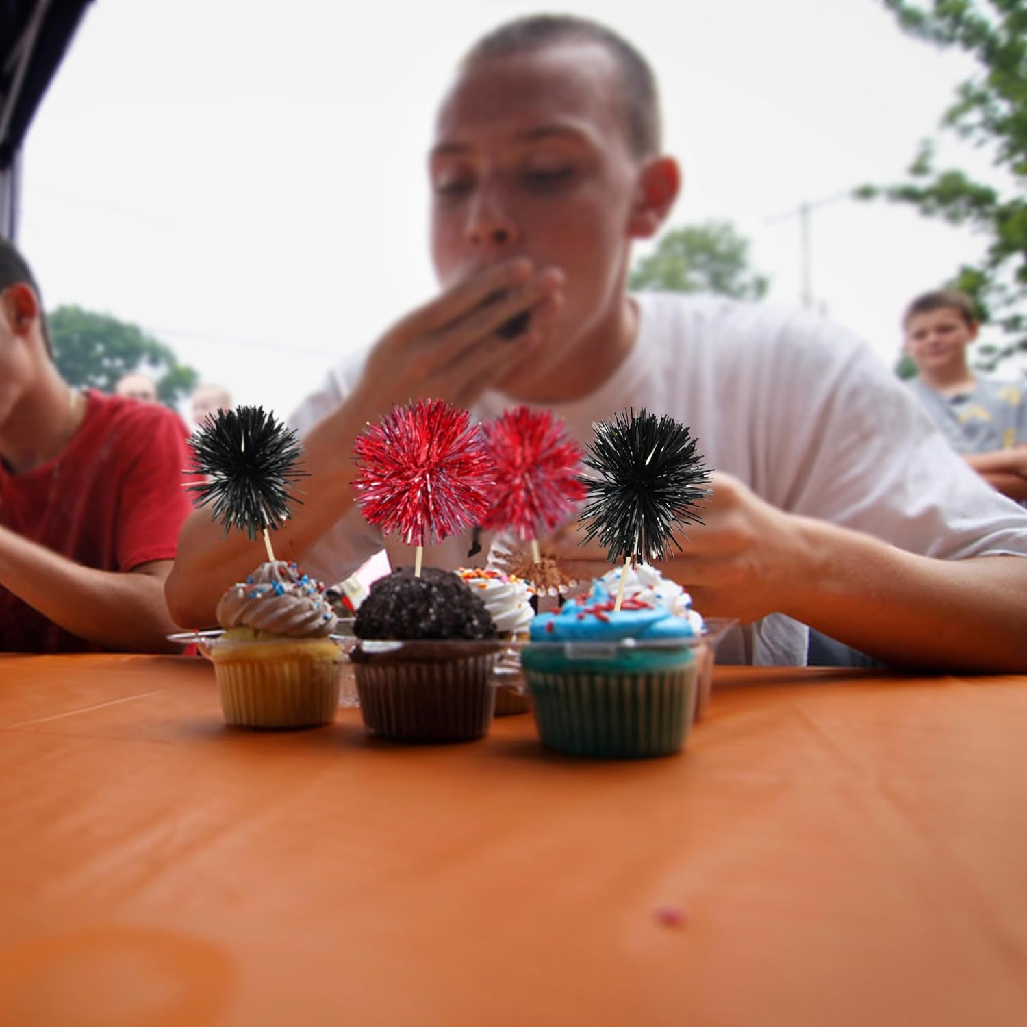 Gyufise 30Pcs Foil Firework Cupcake Toppers Sparkle Tinsel Cake Toppers Tinsel Drink Cake Decoration Cocktail Picks for Birthday Wedding Graduation Party Supplies Black Red