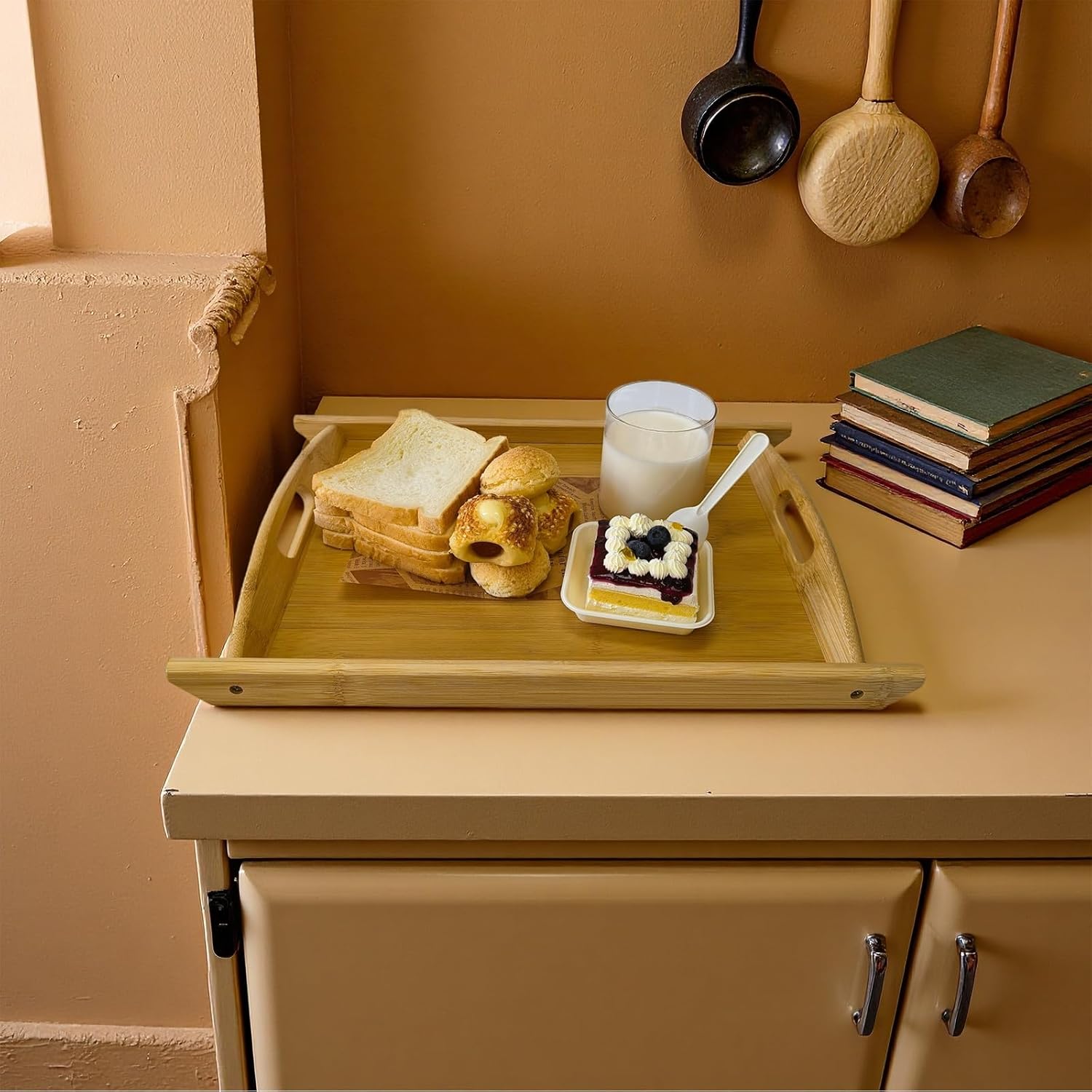 Bamboo Serving Tray Rectangle Platter Breakfast Dinner Food Bed Tray for Eating Kitchen Restaurants (1, 17.3" x 11.8" x 1.2" (with Handle))