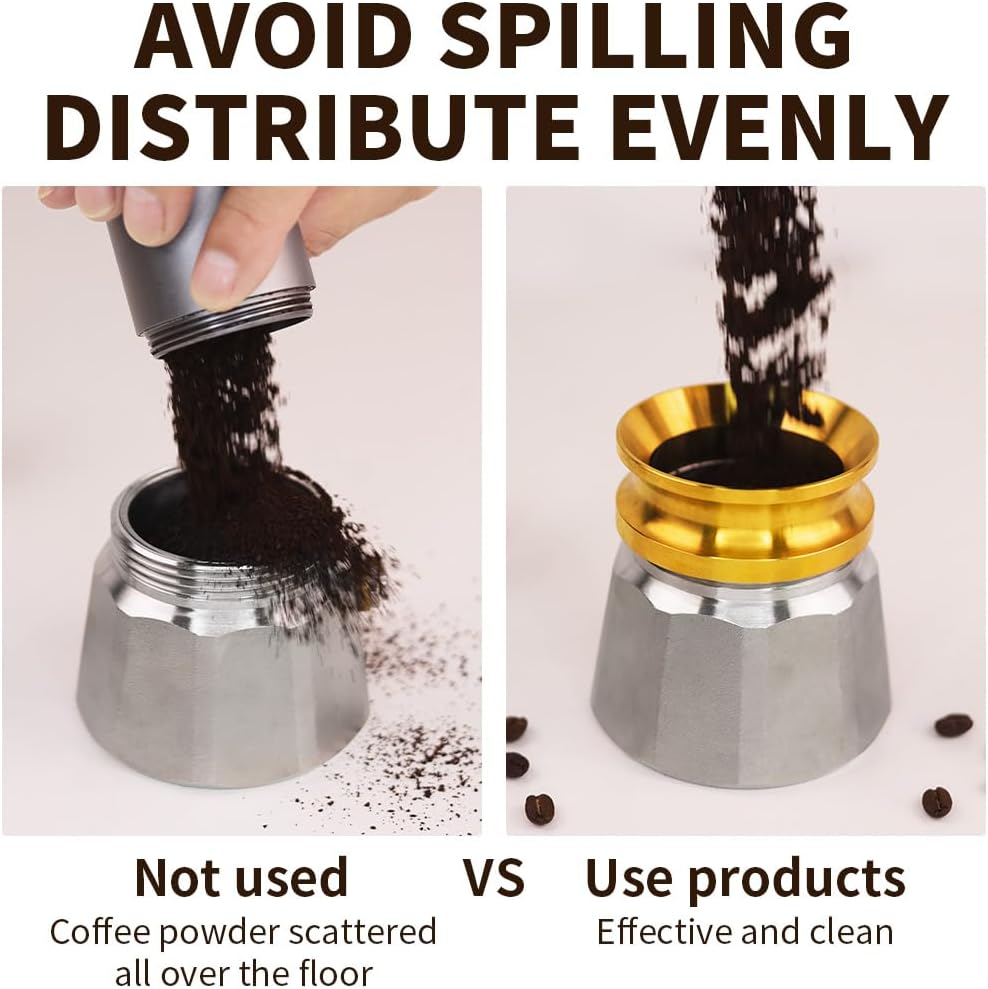 - Easy to Operate: Just place the funnel on the moka pot and pour in the right amount of coffee powder. The unique 360° rotating design allows the coffee powder to be evenly distributed in the funnel, ensuring perfect extraction, making the brewed coffee taste smoother and more fragrant