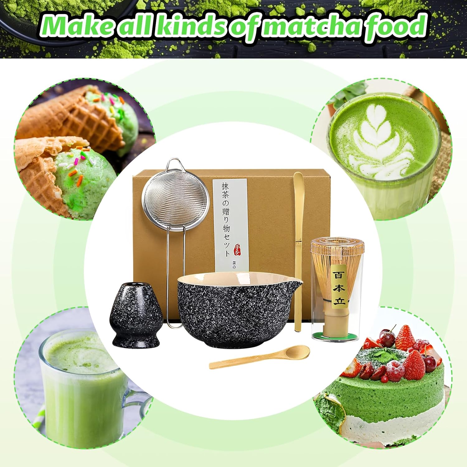 - 🎁【Perfect Matcha Gift Set】Beautifully Packaged, This Matcha Set Kit is an Ideal Gift for Tea Enthusiasts. Includes a Matcha Whisk and Bowl, Sifter, Scoop, and Holder—Everything Needed for a Matcha Latte kit or Ceremonial Tea.