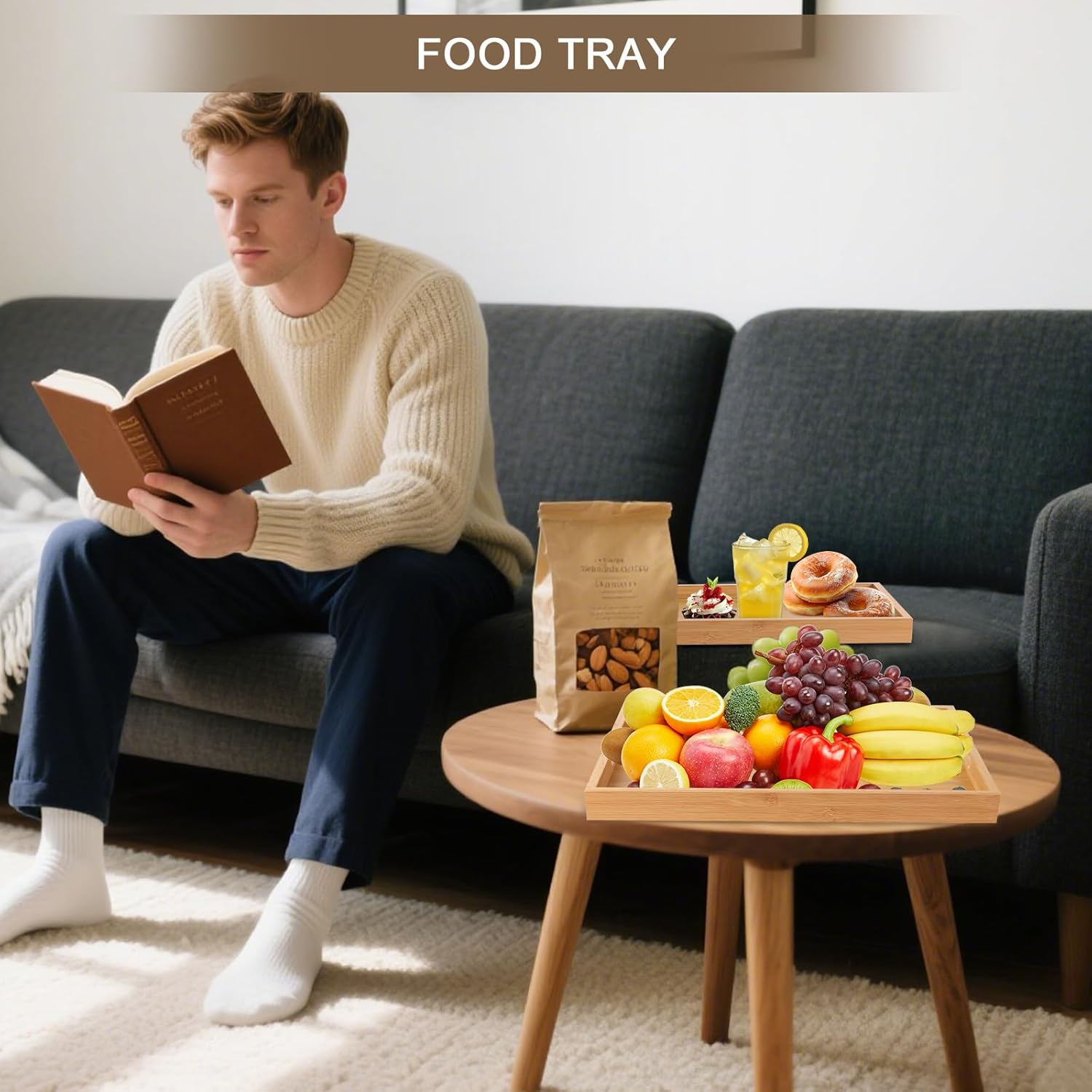 Wooden Serving Tray with Handles Bamboo Decorative Large Coffee Table Food Trays for Breakfast Dinner Restaurants Party or Home Decor Outdoor Scenarios 2 Packs