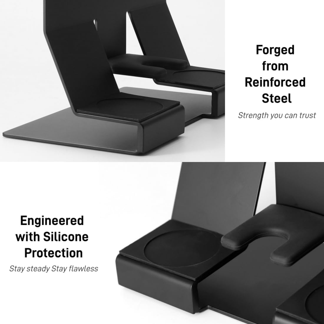 - 【Heavy-Duty Steel Construction】Made of upgraded thickened Teflon-coated steel, this stand offers excellent stability and durability. It resists rust, bending, and daily wear. Equipped with anti-slip pads — perfect for high-use coffee stations or cafés.