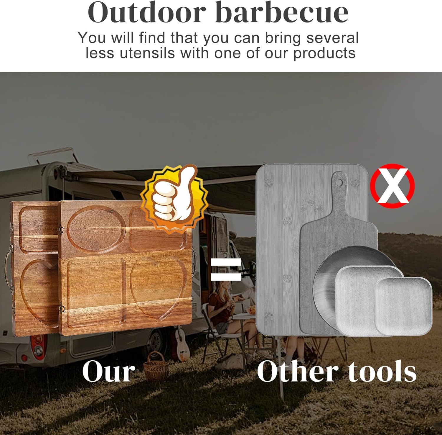 - Dual-Purpose Design:You get 2 pieces serving tray with handles, also 2 pieces cutting board, this serving trays for party can not only be used as party supplies for entertaining guests at banquets or party even go out camping but also as 2 pieces cutting boards for kitchen.