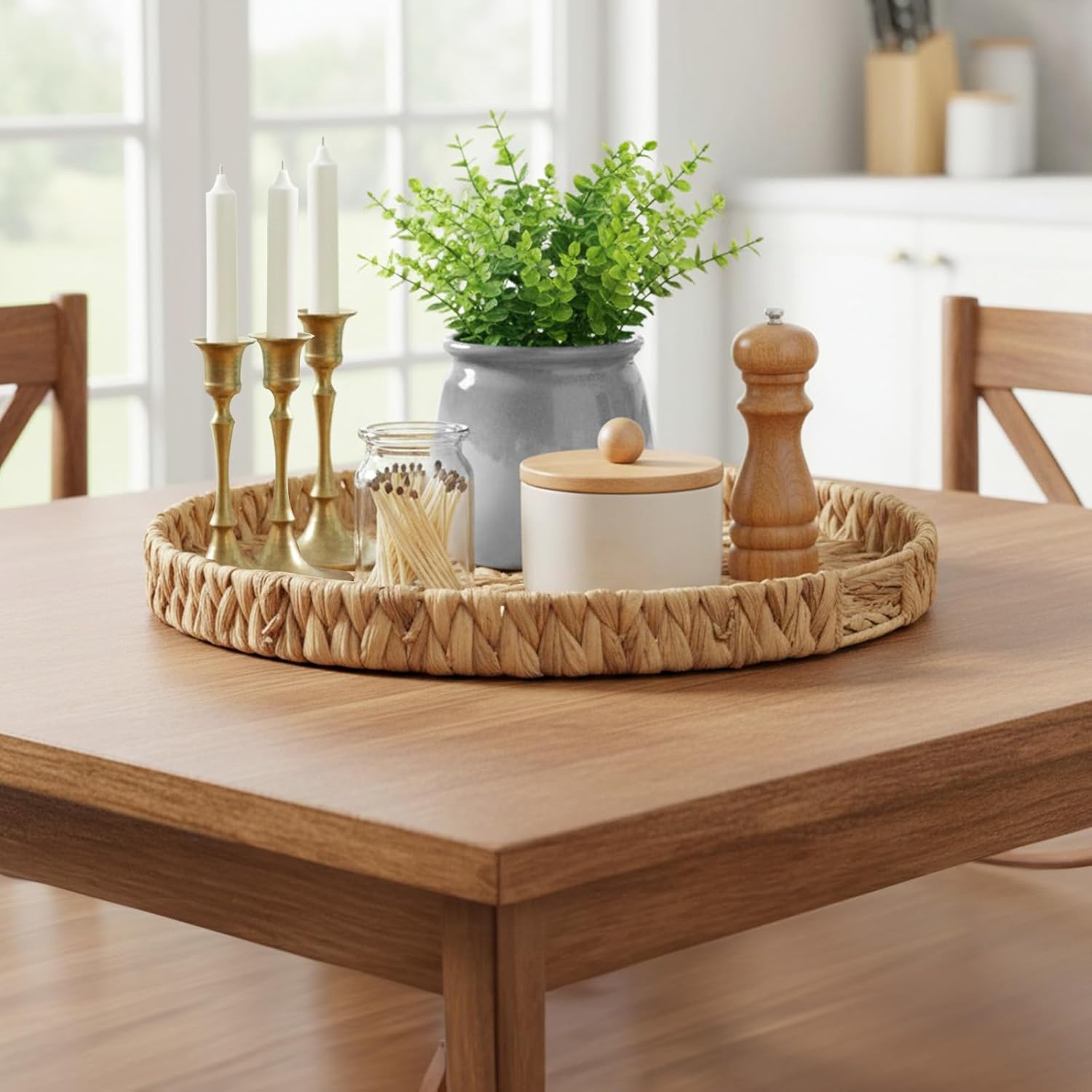 - Natural Material: Crafted from sustainably sourced natural water hyacinth, each tray is handwoven over a sturdy iron frame, ensuring both strength and long-lasting durability