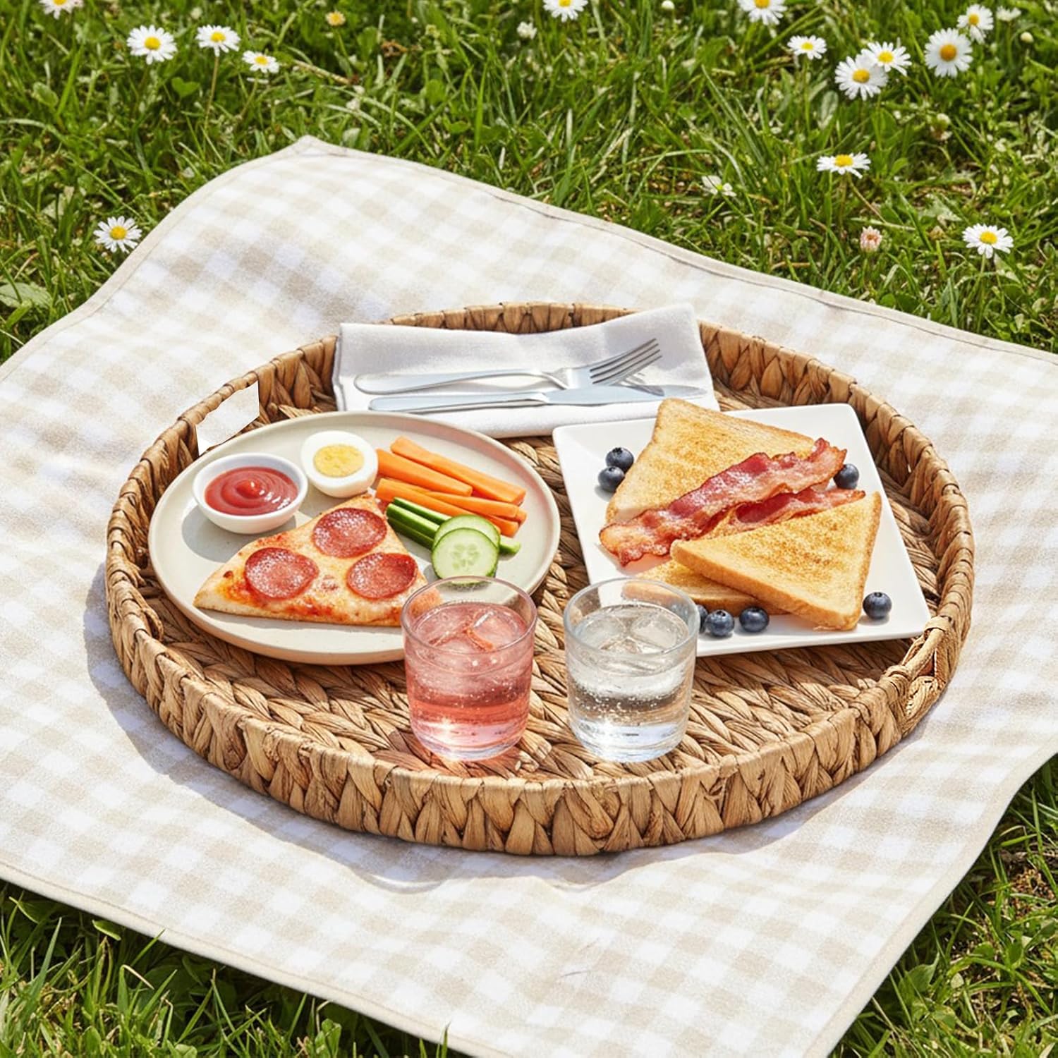 - Built-in Handles for Easy Transport: With two sturdy handles, this tray is easy to carry and move, whether from the living room to the bedroom or outdoors; Perfect for serving, it adds convenience and style to any setting