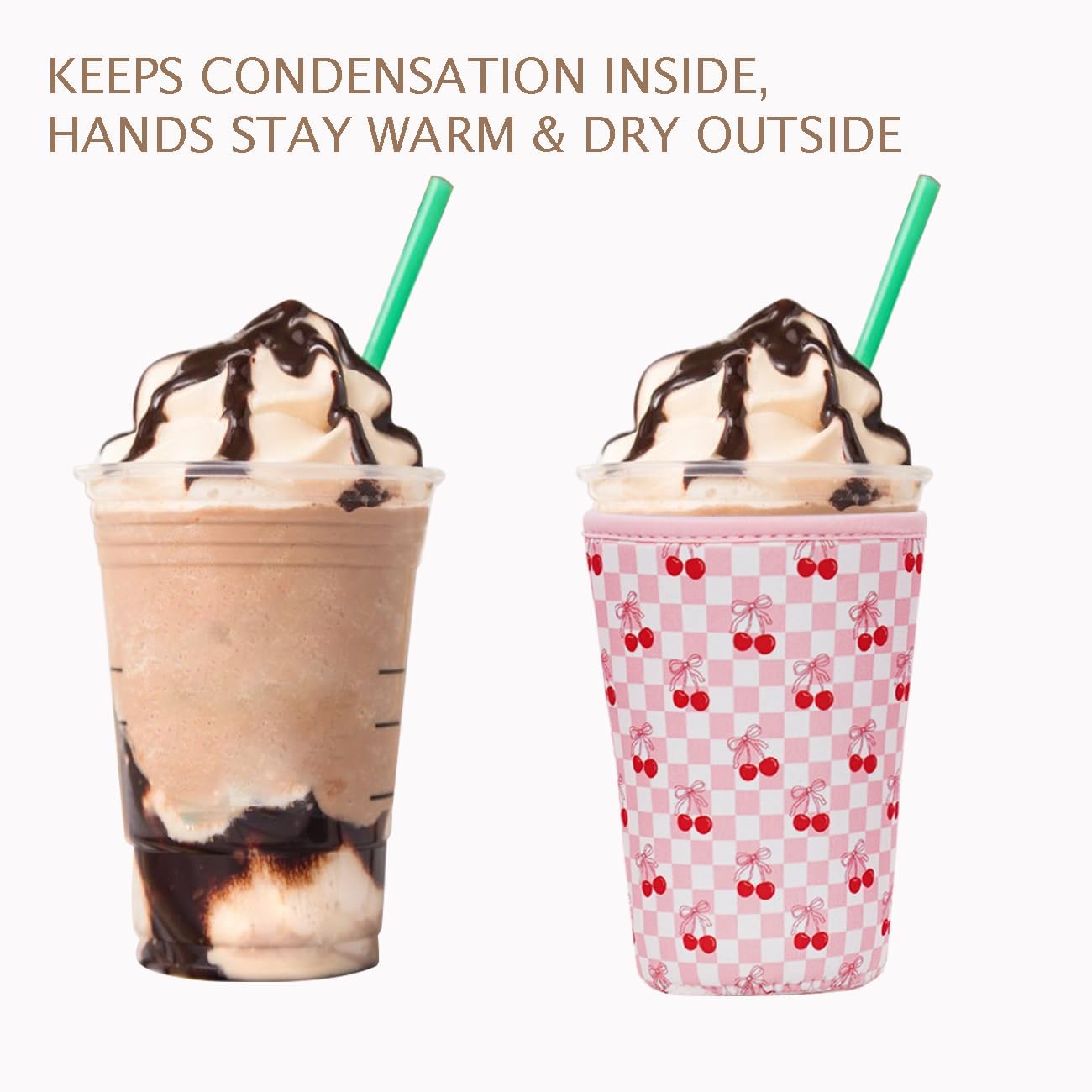 Reusable Insulated Neoprene Iced Coffee Cup Sleeve, Durable Drink Sleeve for Cold Beverages, Beverage Holder for Iced Coffee, Sweet Cherry