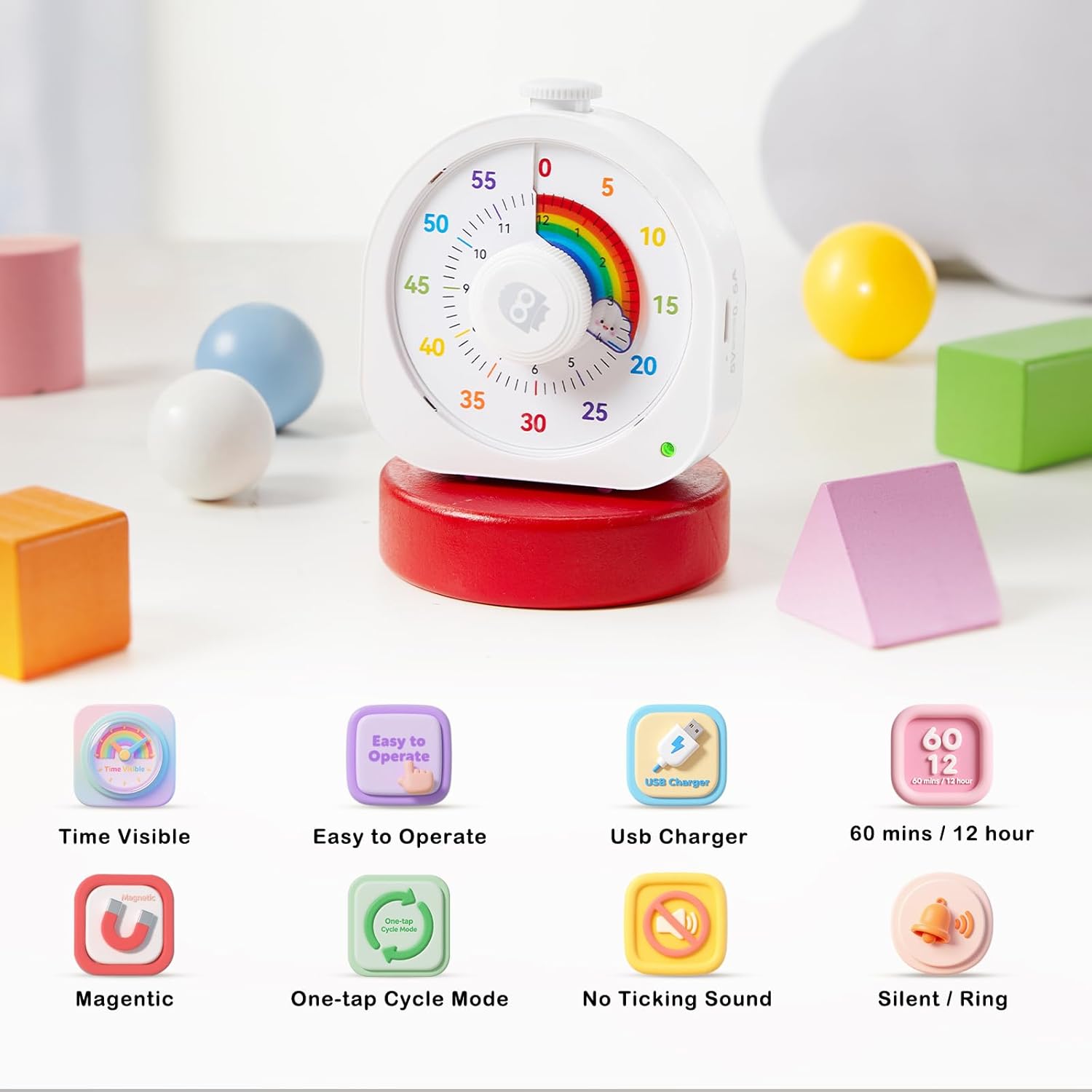 - π Rainbow Visual Timer for Kids & Adults β Rainbow pattern design stimulates children's interestand. Watch time pass with vibrant rainbow segments! Easy-to-read countdown (60min or 12h) helps kids and ADHD users manage tasks visually.