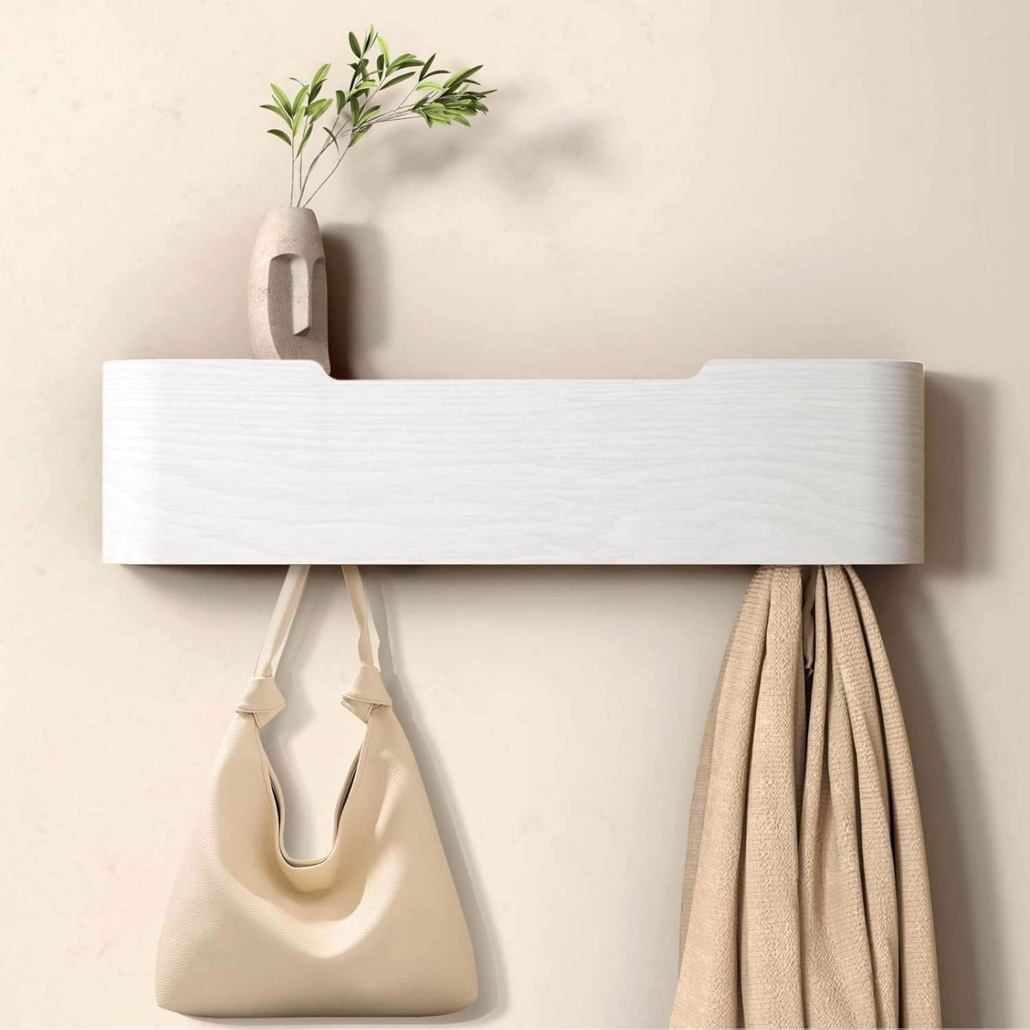 - 【Discreet Hook Design】: This wooden coat rack features a hidden hook structure that avoids visual clutter caused by exposed hooks. Perfect for entryways, bedrooms, and other spaces where cleanliness is prioritized, it serves as both a storage solution and a wall decoration, seamlessly blending into various home decor styles