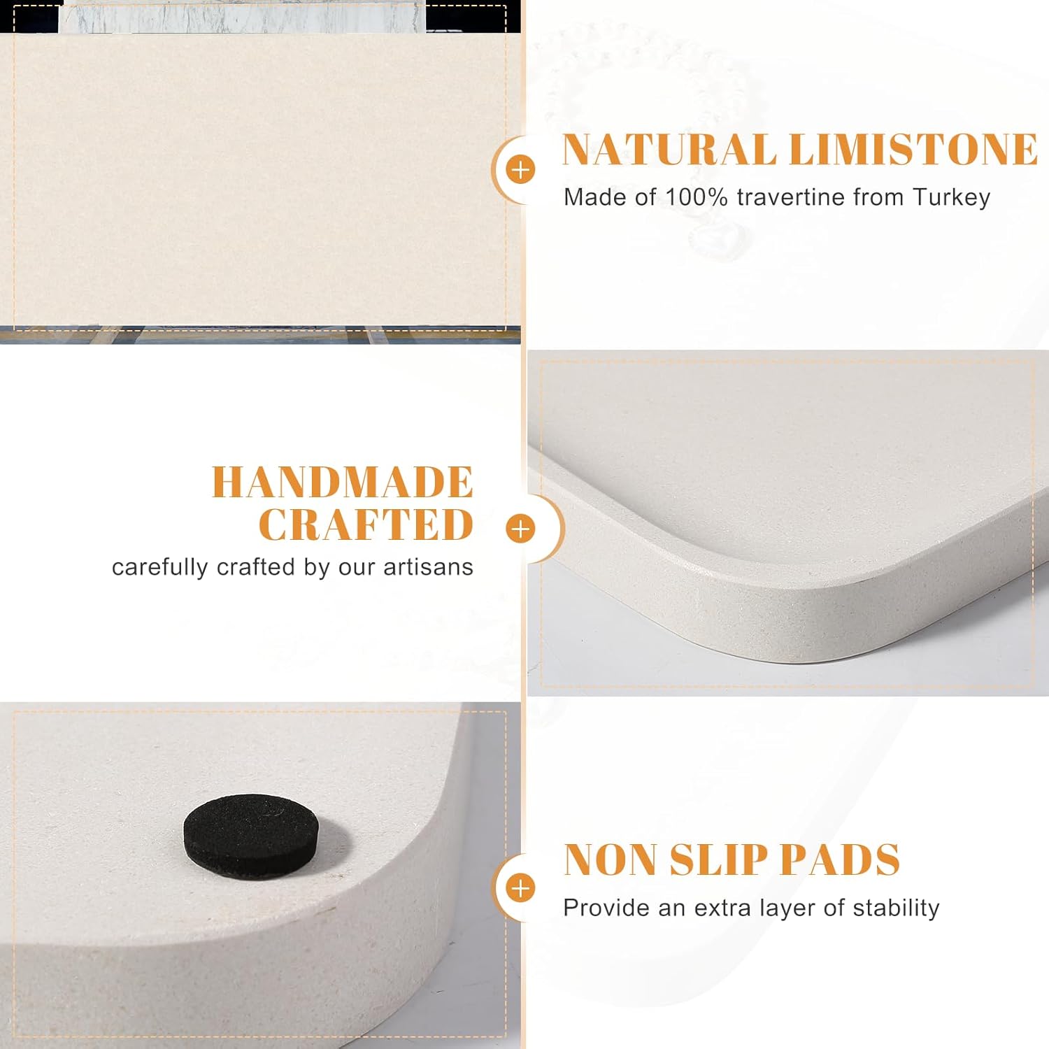- 【Easy To Clean】The rectangle tray measures 11 x 7.9 x 0.7 inches, perfect for organizing and displaying your daily essentials. The marble vanity plate is easy to clean by simply wiping with a damp cloth to remove dirt and stains. Four non-slip pads on the bottom of the tray protect the travertine from sliding and scratching the surface