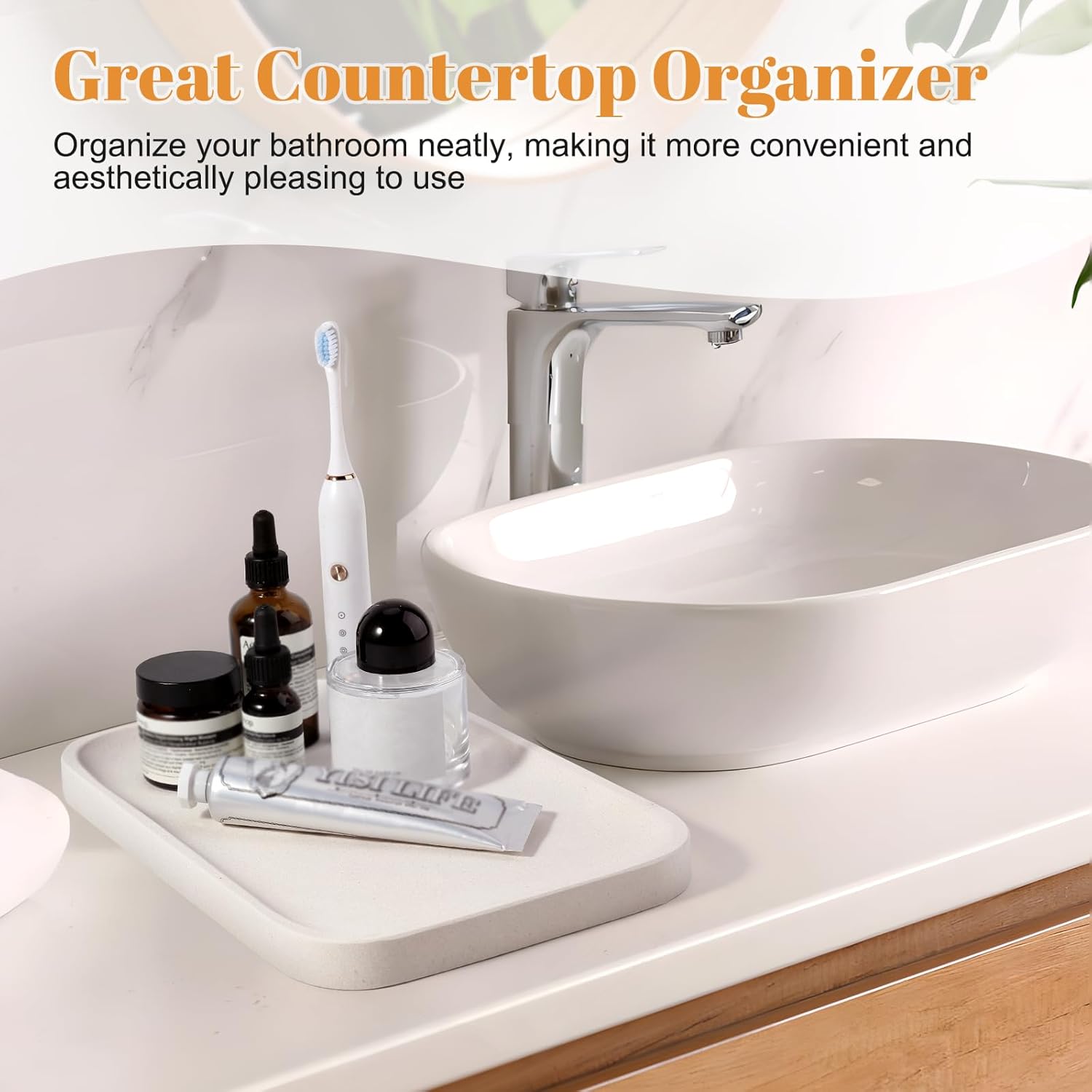- 【Multi Purpose】This organizer tray can be used as a jewelry tray, perfume tray, cosmetic tray, key watch tray, or even a coffee tray. Whether kitchen, bedroom or living room counter, table or nightstand, this stone vanity tray fits in perfectly. The slightly raised edges of the stone tray can prevent items from falling