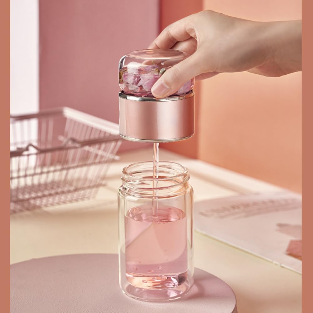 - 3-in-1 Versatility: This tea infuser bottle as a tea infuser, a fruit infuser, or remove the filter to turn it into your everyday water bottle—meeting multiple drink needs in one stylish design; Enjoy a Burn-Free Experience with the Double-Walled Glass Insulation That Keeps the Exterior Cool to the Touch.