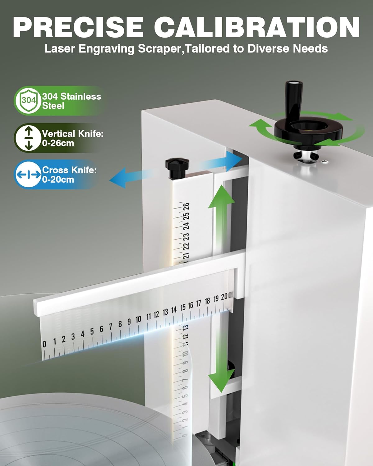 - PRECISE ADJUSTMENT CAPABILITY:This cake decorating machine features a 13.7-inch turntable (for 4-12 inch cakes) and an adjustable scraper (7.9"L x 10.2"H) with clear scales, letting you set exact frosting thickness. Its LED touch panel simplifies adjusting thickness and speed (60-320 RPM), outperforming mechanical controls. With a small footprint, it fits any kitchen, ensuring reliable results with cream.