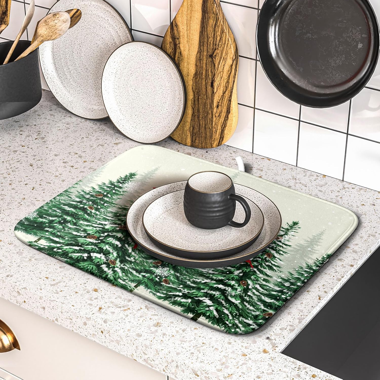 - 1【Good Material】:Our winter pine tree drying mat is made of high absorbent microfiber and the middle is made of composite spongedurable, reversible do not fade and comfortable. At the same time, it can protect your kitchen counter from scratching by the tableware.