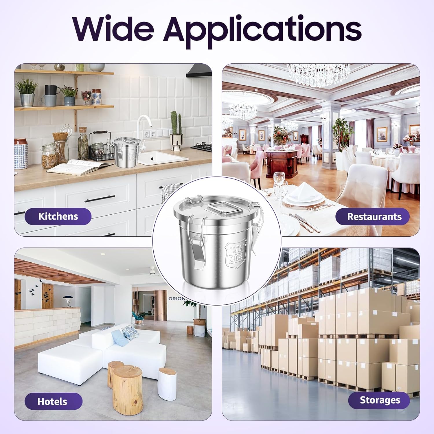 - Durable and Sturdy: The storage bucket has a food-grade 304 stainless steel body with a thickness of 0.6mm and a polishing process, 201 stainless steel sealing buckles and handles with butt welding, and a high-quality silicon sealing ring, offering durability and sturdiness for this airtight food storage container