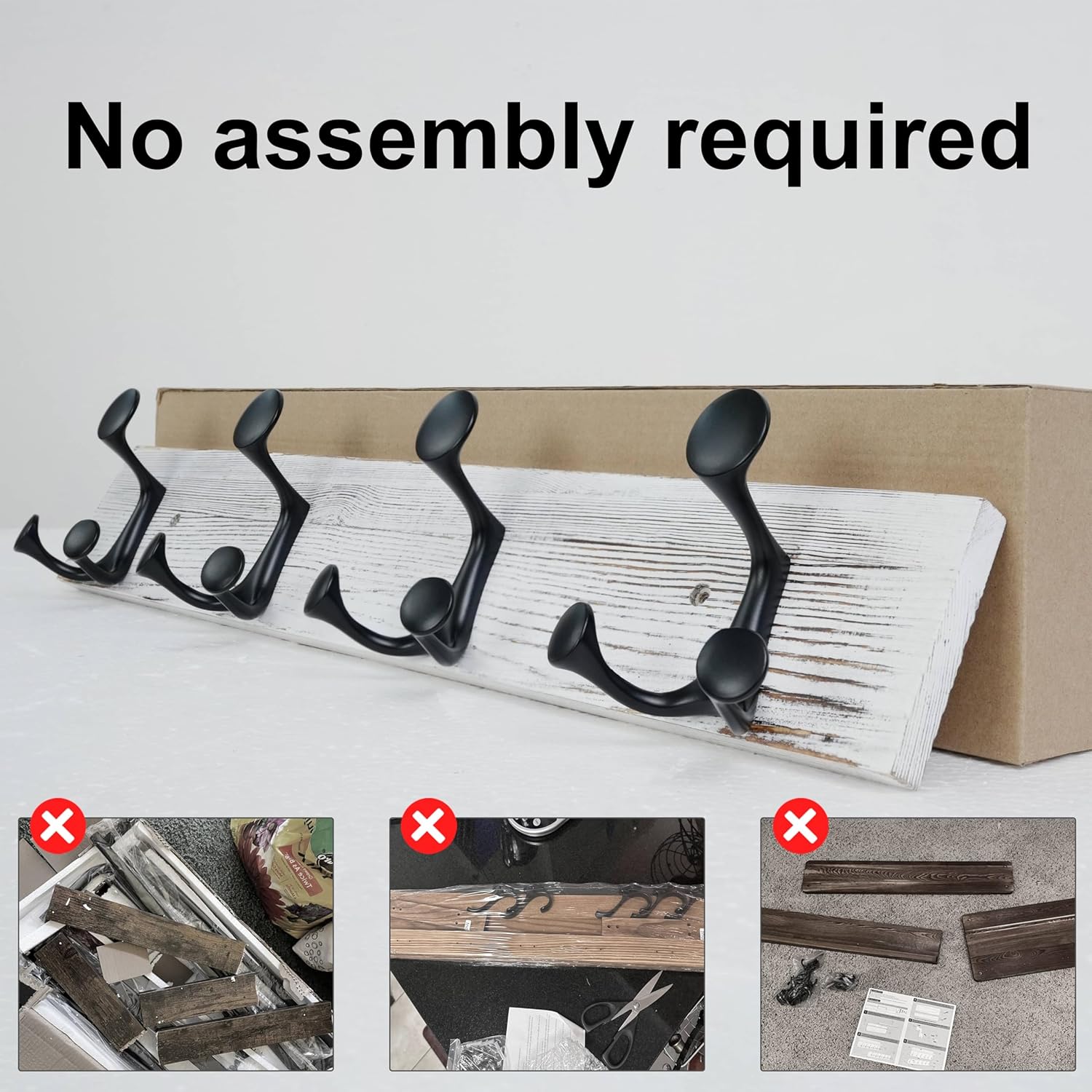 SKOLOO 24-Inch Wood Coat Rack Wall Mount with 4 Triple Hooks - Ideal for Family Entrances, Classrooms, and Pet Supplies Storage - Perfect Coat Hooks for Wall,Distressed White Wash