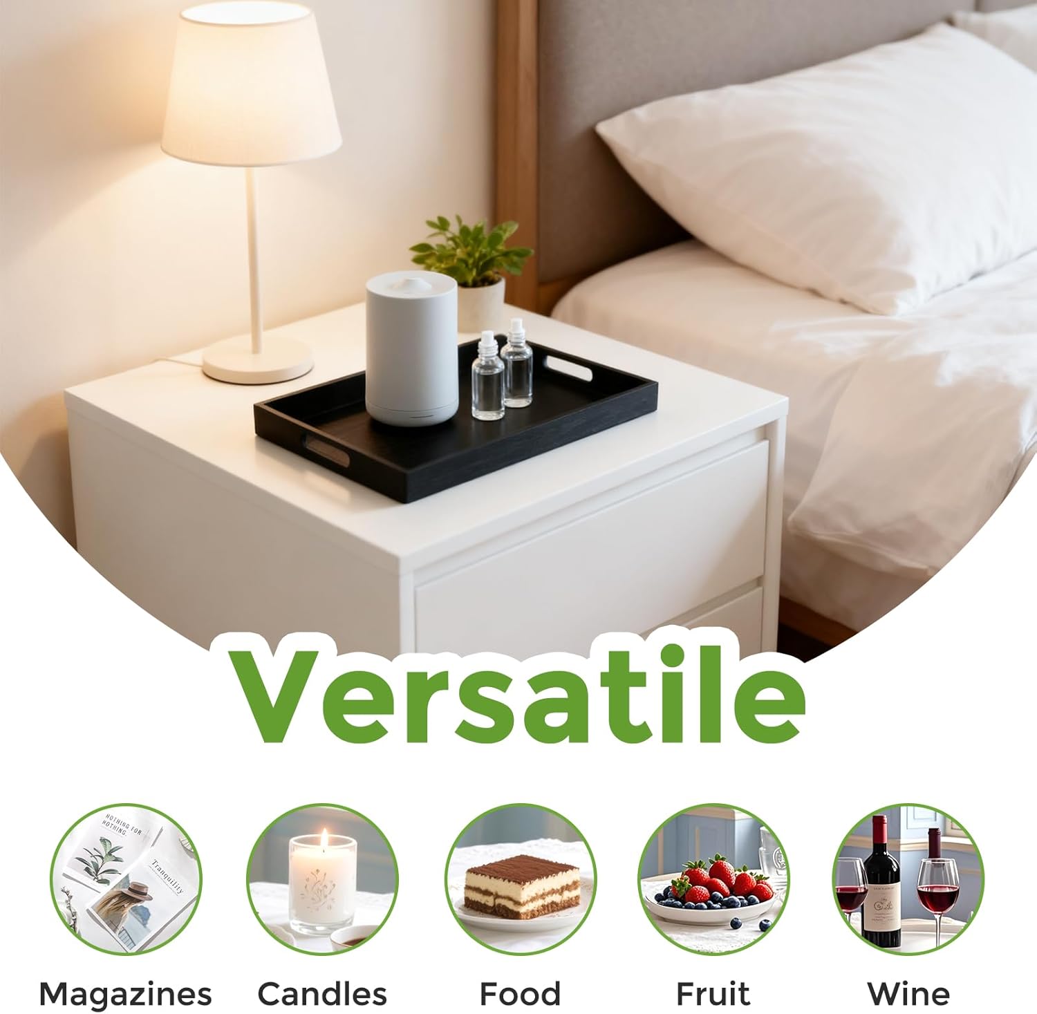 - Suitable for a Wide Range of Uses: Designed for more than just serving—use this elegant wooden serving tray to serve breakfast in bed on a lazy weekend, present snacks and drinks to guests, or organize daily essentials like remotes, keys, or candles. Its 17"x12" size provides ample space while fitting comfortably on coffee table, ottoman, kitchen counter, or vanity.