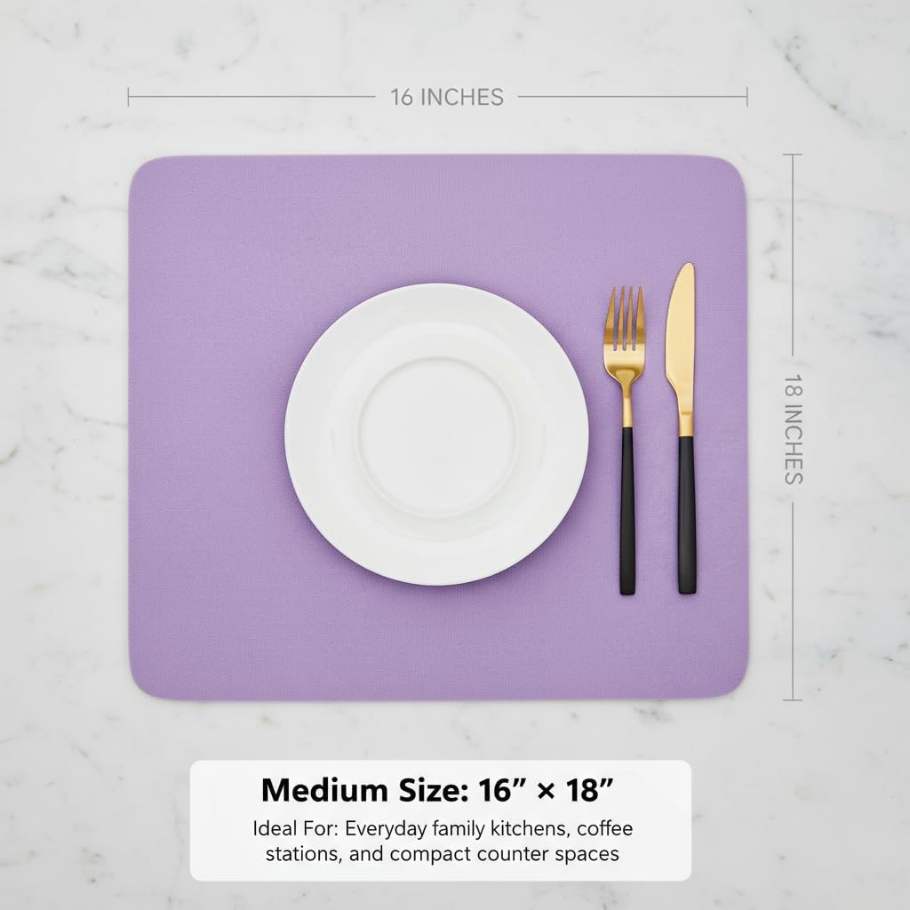 Dish Drying Mat Super Absorbent – 16" x 18" Coffee Mat for Countertops – Non-Slip Drying Mat for Kitchen Counter – Easy to Clean Water Absorbent Mat – Large Dish Drying Mats (Lavender)