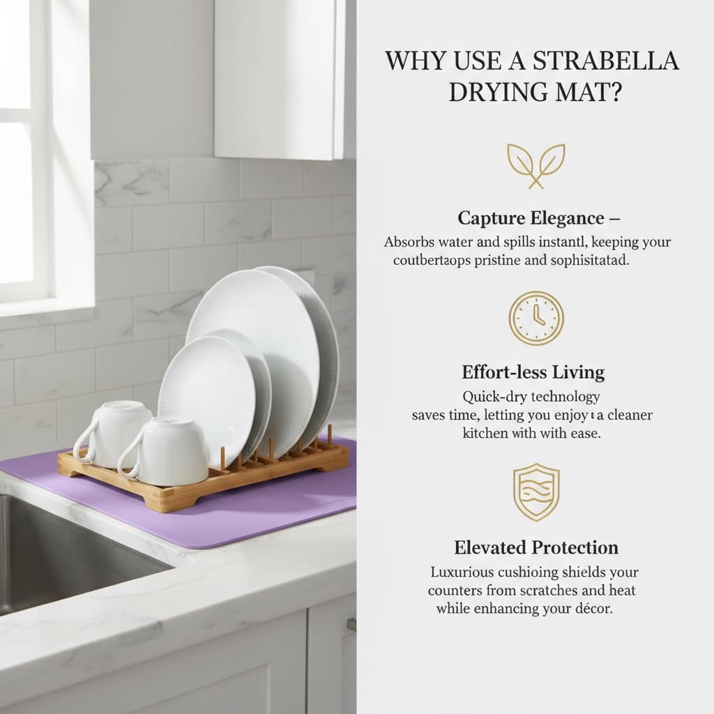 - MULTI-PURPOSE: Elevate your kitchen experience with our Multi-Use Dish Drying Mat. Its versatile design makes it perfect for drying dishes, and glassware, or even as a protective surface for countertop appliances. Streamline your kitchen tasks with a single, versatile solution.