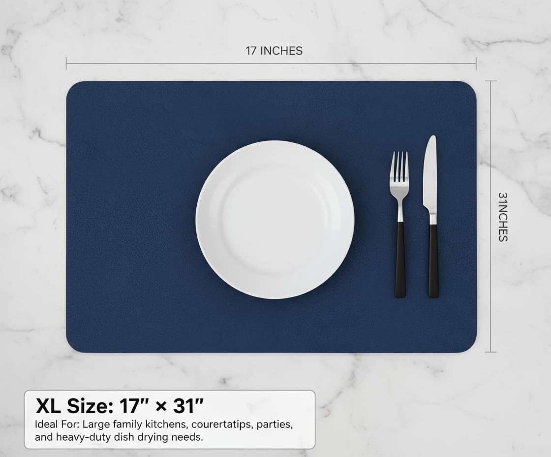 Dish Drying Mat Super Absorbent – 17" x 31" Coffee Mat for Countertops – Non-Slip Drying Mat for Kitchen Counter – Easy to Clean Water Absorbent Mat – XLarge Dish Drying Mats (Navy Blue)
