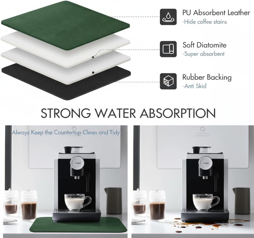 Dish Drying Mat Super Absorbent – 16" x 18" Coffee Mat for Countertops – Non-Slip Drying Mat for Kitchen Counter – Easy to Clean Water Absorbent Mat – Large Dish Drying Mats (Brown)