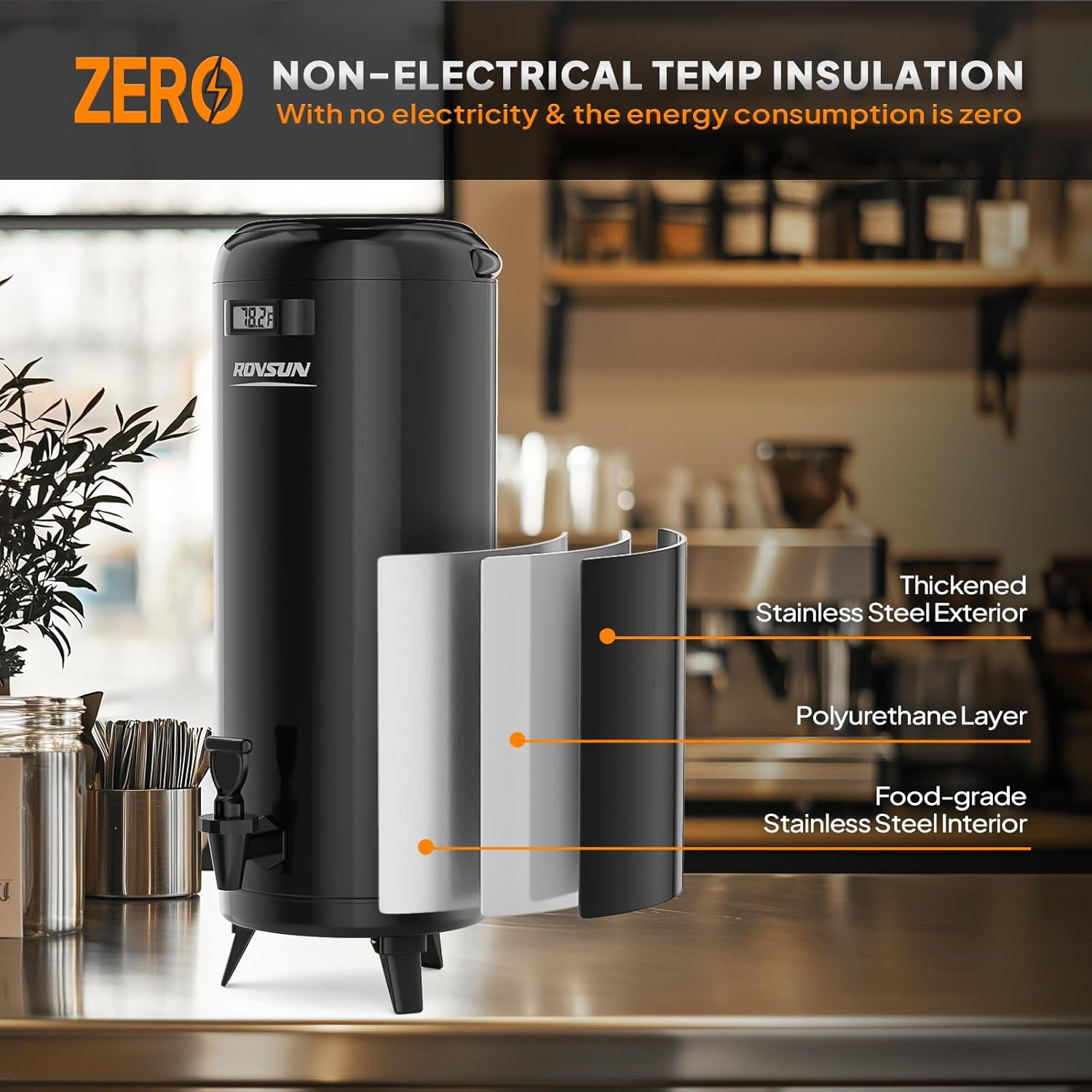 - 【Premium Insulation】 Engineered with triple-layer insulation technology and a spiral-sealed lid, this beverage dispenser maintains ideal temperatures for hours—keeping hot drinks like bubble tea and coffee hot, and cold beverages chilled. Perfect for busy shops and events where reliable temperature control is a must