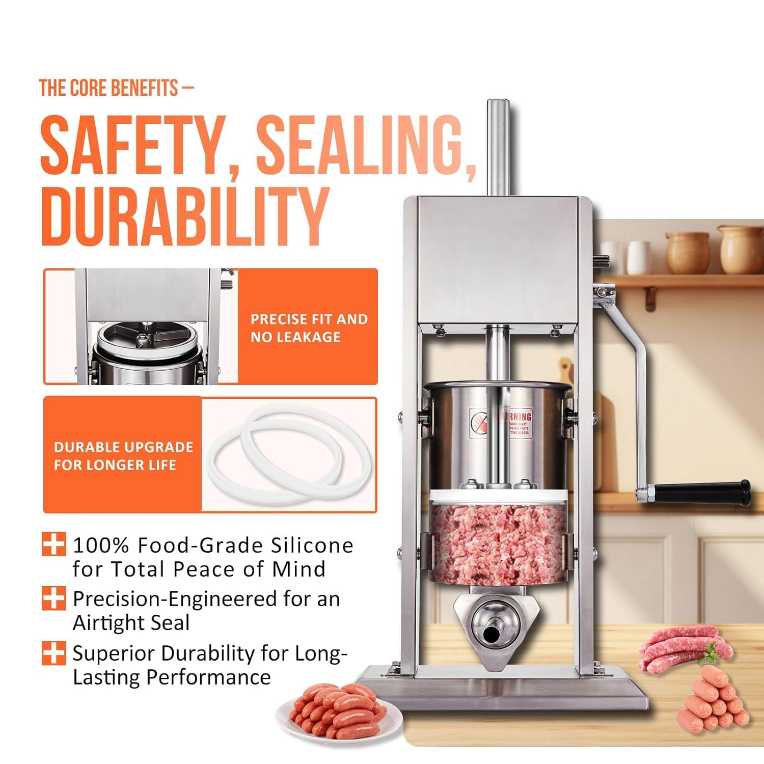 - 【LEAK-PROOF PERFORMANCE】: End frustrating "blow-by" and messy cleanups. The superior flexibility of this silicone plunger seal creates a perfect airtight barrier, ensuring all pressure is used for stuffing sausage, not creating leaks. Maximize your efficiency and minimize waste