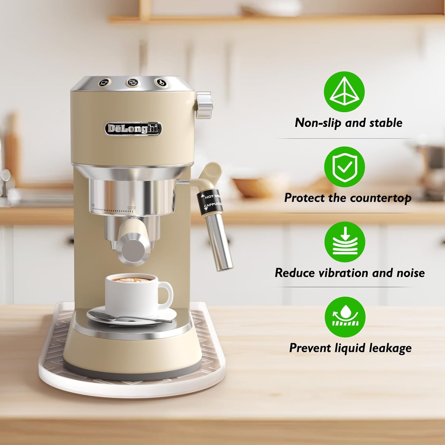 - Precise Arc Design for Perfect Fit:Tailored to match the curved base of most coffee machines, this silicone coffee mat fits snugly without slipping or shifting. It fully covers the contact area, preventing scratches on your countertop while keeping the coffee machine stable during use