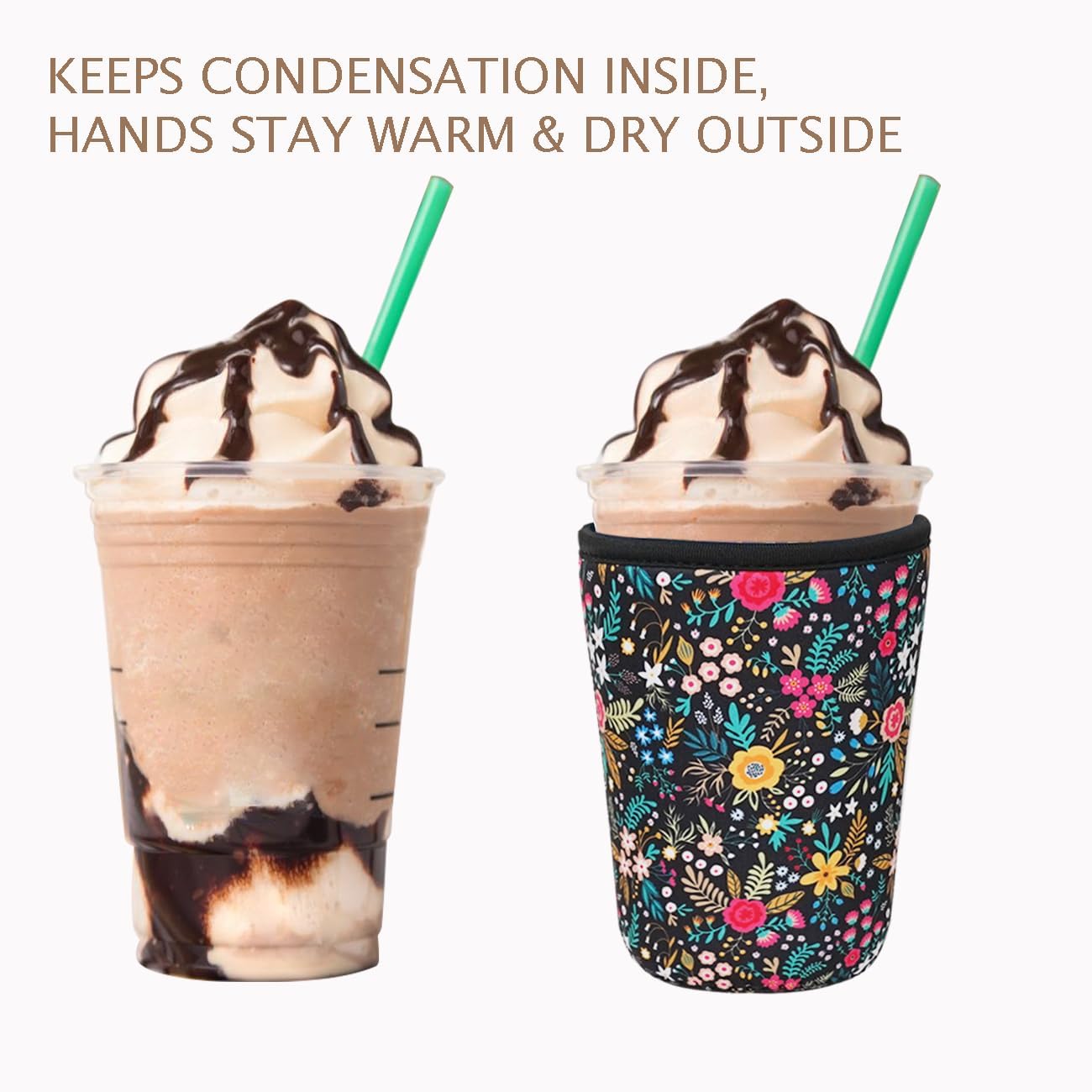 Reusable Insulated Neoprene Iced Coffee Cup Sleeve, Durable Drink Sleeve for Cold Beverages, Beverage Holder for Iced Coffee, Lush Blossom