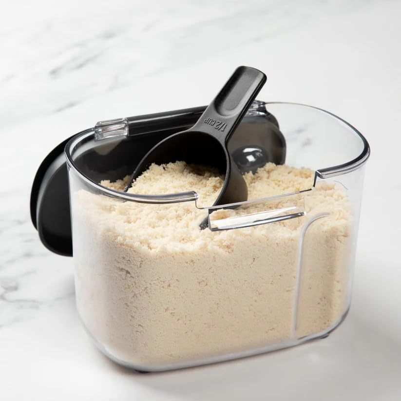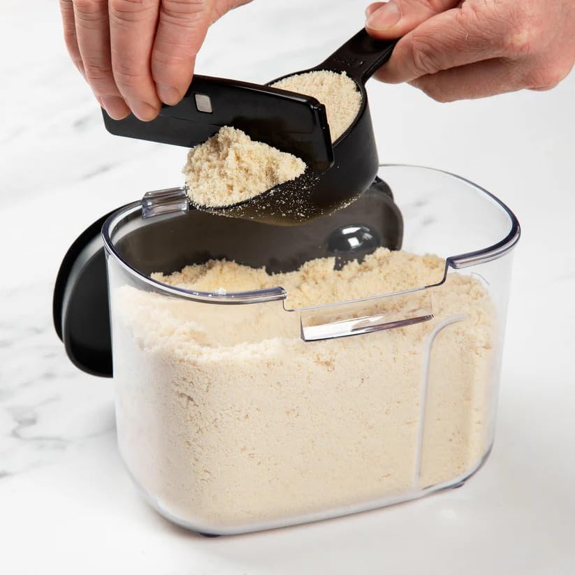 - Airtight Mini Flour Storage: 1.5-quart (48-ounce) container holds specialty flours like almond, keto wheat, and potato flour; Features a silicone seal and stainless steel hinges for airtight freshness and measurement markings up to 6 cups that clearly display contents